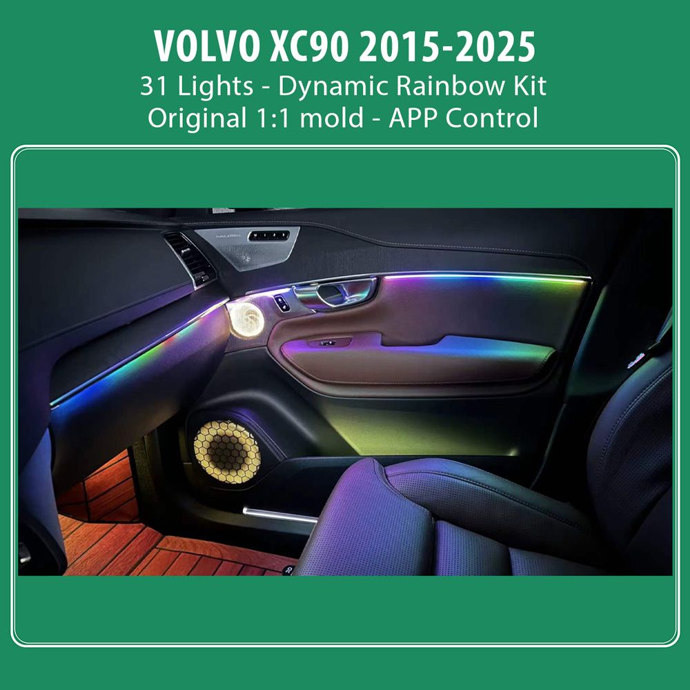 - 31 Lights (8 door trim lights, 2 main dashboard lights, 2 sunroof lights, 4 luminous midrange speakers covres, 4 door handle lights, 4 foot lights, 4 storage lights, 4 speaker lights).